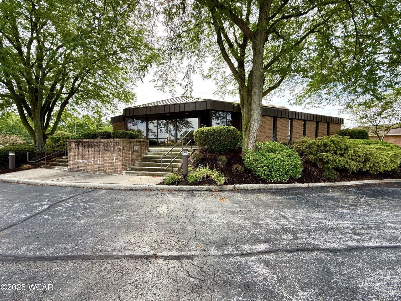 Large brick office building with metal roof. Ample parking lot. Accessible main entrance, centrally-located, with traffic counts of about 9900 cars per day. Main floor has 14 private offices; bullpen area with 7 cubicles and room to add many more. Copier/work room; server/storage room with dedicated AC; unisex restroom; reception area with staircase. Upper level with two large training/conference rooms; employee lounge/kitchenette; four-stall womens restroom; four-stall mens restroom, and mechanical room. Campus features lighted signage, mature landscaping, flagpole and extra grass lot.