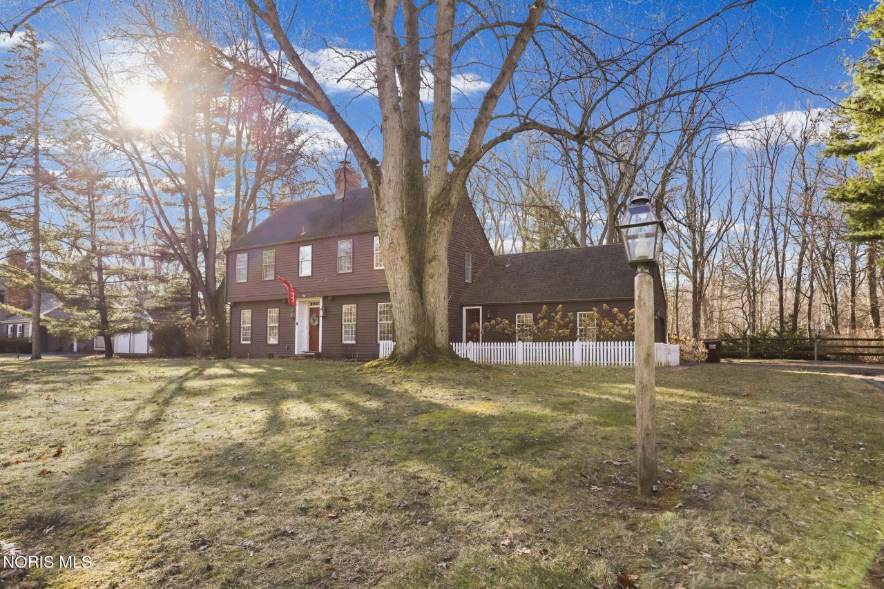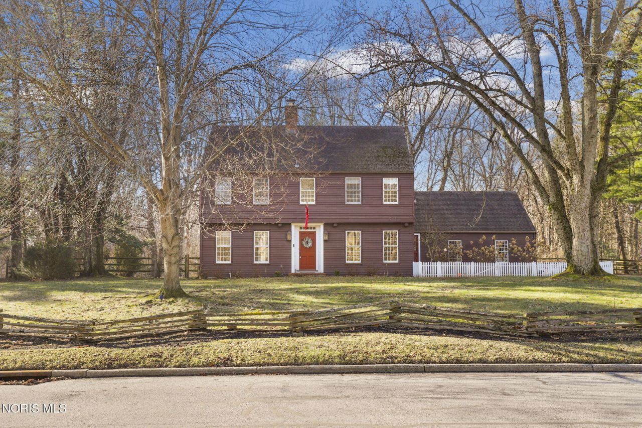 Timeless charm meets everyday comfort in this character-filled Garrison Colonial, nestled on over an acre of stunning wooded land. This 4-bedroom, 2.5-bath home welcomes you with original brick flooring in the foyer and kitchen. The kitchen comes fully equipped with all appliances included and flows seamlessly into the heart of the home. The family room features built-in bookcases, crown molding, and a cozy wood-burning fireplace with direct access to the patio, perfect for entertaining. A sun-filled living room showcases beautiful wood beams and serene backyard views. Upstairs, the spacious primary suite offers his-and-hers closets and a private ensuite. Beautiful brick patio space overlooking the stunning fenced in backyard. Two-car side-load garage. A rare combination of privacy, character, and space all in a truly picturesque setting!