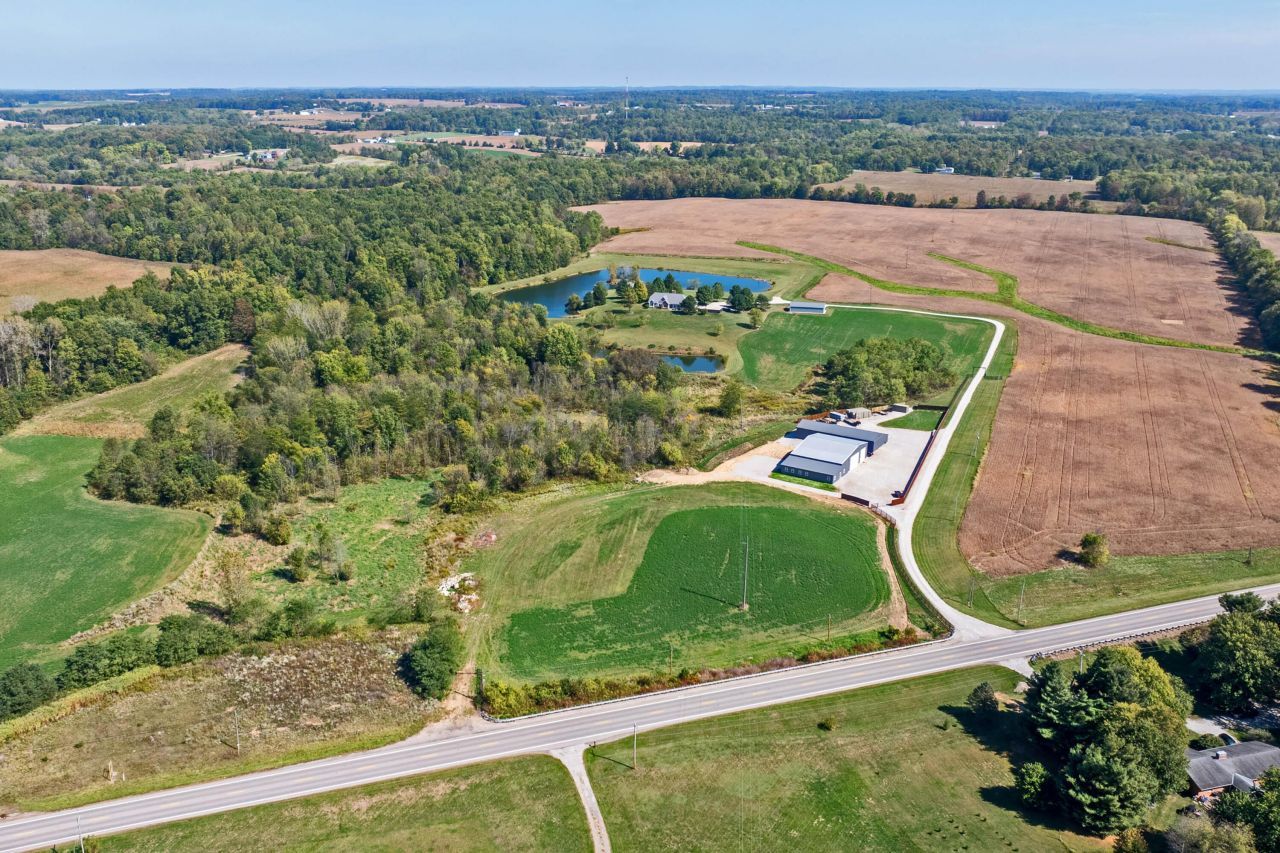 VACATION AT HOME AND TRULY ''LIVE OFF THE LAND''! A LONG, WINDING GATED DRIVE WELCOMES YOU TO PRIVACY, SECLUSION, AND OVER 17.5 ACRES OF PANORAMIC COUNTRYSIDE VIEWS. THE PROPERTY INCLUDES A ~1-ACRE STOCKED POND, GAZEBO, AND A 28X32 SHELTER HOUSE/PAVILION OVERLOOKING A ~4-ACRE STOCKED LAKE WITH DOCK???PERFECT FOR FISHING, RELAXING, ENTERTAINING, AND UNFORGETTABLE GATHERINGS. WITH ~16 ACRES OF PASTURE/TILLABLE GROUND, BRING YOUR HORSES, LIVESTOCK, OR 4H PROJECTS, WHILE WOODED AREAS PROVIDE PRIME SPACE FOR HUNTING AND SCENIC TRAILS. THE CUSTOM-BUILT RANCH HOME OFFERS ~3,200 SF OF OPEN LIVING, CUSTOM DESIGNED WITH UPGRADES THROUGHOUT. AN INVITING OVERSIZED FOYER OPENS TO THE EXPANSIVE GREAT ROOM WITH CATHEDRAL CEILINGS, DECORATIVE BEAMS, AND FIREPLACE. THE MAIN-LEVEL OFFICE PROVIDES FLEXIBLE WORK-FROM-HOME SPACE OR HOME SCHOOLING. THE PRIMARY SUITE BOASTS CATHEDRAL CEILINGS, WALK-IN CLOSET, AND A SPA-INSPIRED BATH WITH JETTED TUB AND BOW WINDOW WALL. THE COUNTRY-SIZED KITCHEN FEATURES A WALK-IN PANTRY, BUTLER'S PANTRY, WRAPAROUND CABINETRY, AND FULL APPLIANCE PACKAGE. A FULL WALK-UP BASEMENT IS READY TO FINISH AND INCLUDES A HUNTING ROOM/WORKSHOP. OUTDOOR LIVING SHINES WITH A LARGE PATIO, HOT TUB, AND A NEWLY BUILT (2025) 30X60 BARN WITH 20X30 ENCLOSED SHOP/GARAGE AND CONCRETE FLOOR. FARM, HUNT, FISH, ENTERTAIN???THIS PROPERTY LETS YOU DO IT ALL WITHOUT EVER LEAVING HOME! TOO MANY EXTRAS AND UPDATES TO LIST???QUALITY AND OPPORTUNITY EVERYWHERE YOU LOOK. CONVENIENTLY LOCATED WITHIN JUST A FEW MINUTES TO I-71 FOR EASY ACCESS COLUMBUS AND CLEVELAND.