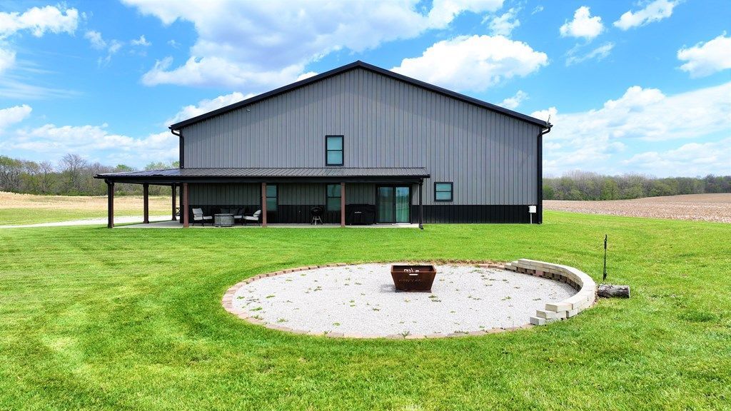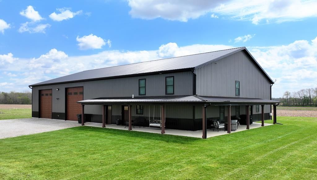 Stunning barndominium built in 2022 offering 6,000 sq. ft. in a peaceful country setting on 11+ acres. The living quarters (1,920 sq. ft.) feature a beautiful open great room with vaulted ceilings, kitchen and dining area, custom pantry, solid-surface countertops, and cabinetry, Amish built barn doors, bathrooms, and walk-in closets. The impressive 60x68 heated workshop/garage (4,080 sq. ft.) boasts radiant floor heat, 20-ft ceilings, 14-ft overhead doors, and a loft'?ideal for serious projects or storage. Public water. Bonus: a motorcycle track in the backyard! A must-see property to truly appreciate.